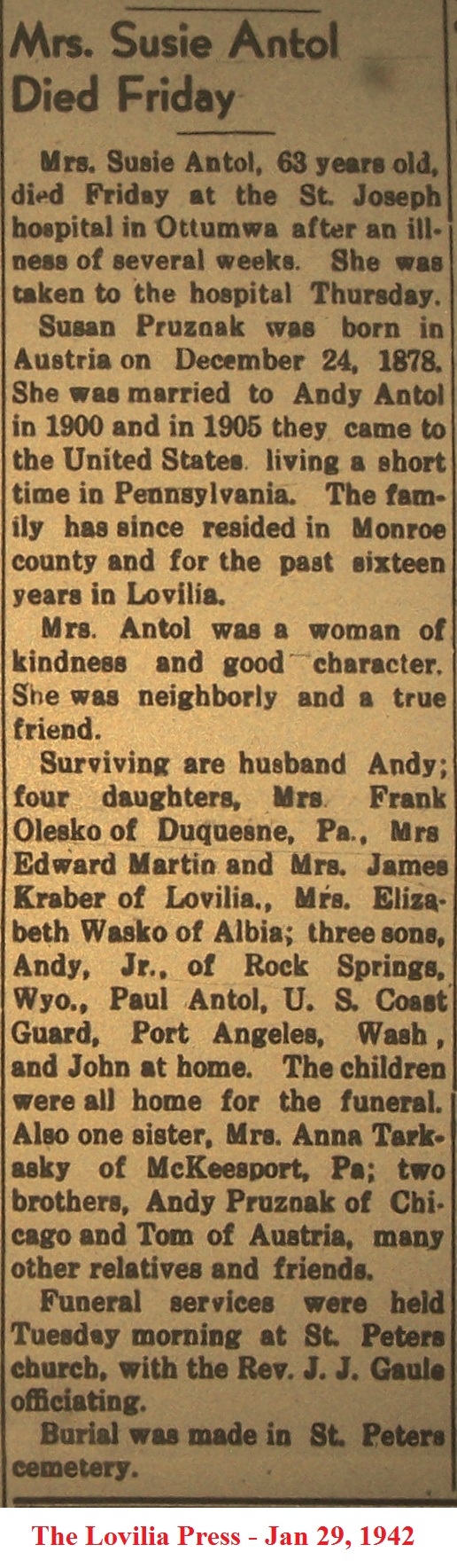 AntolSusan Obituary