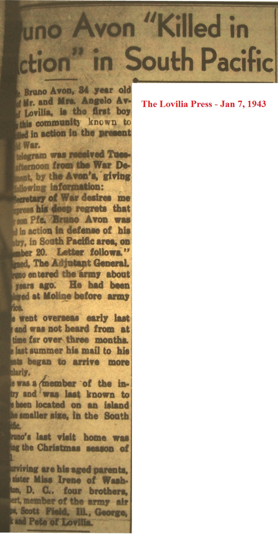 AvonBruno Death Notice