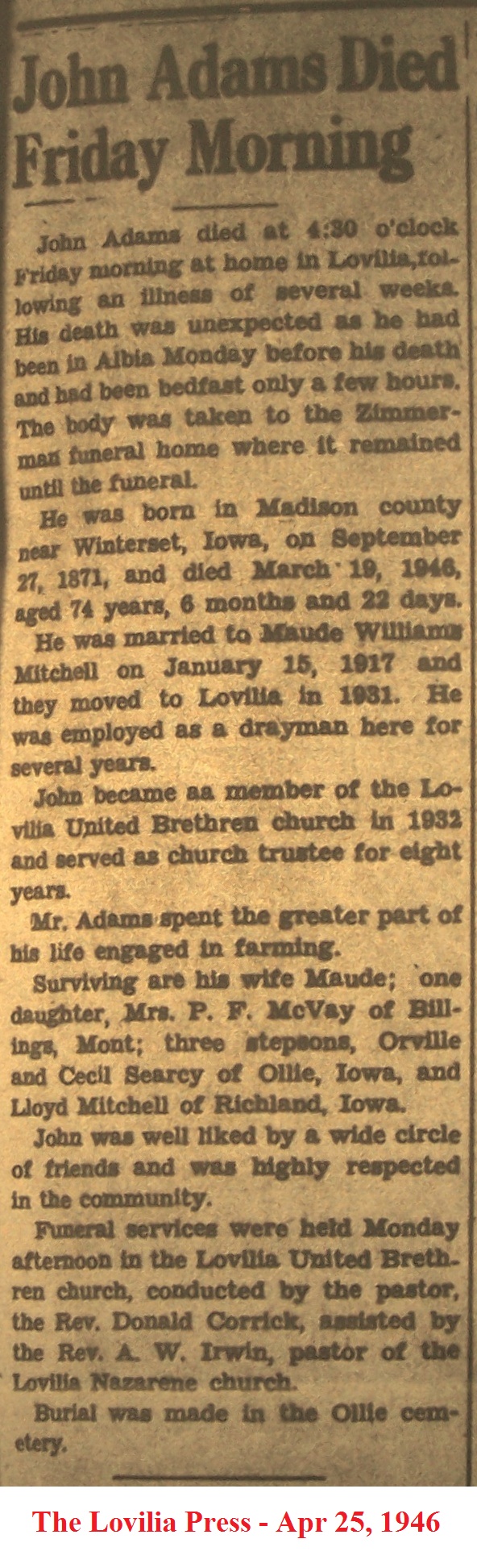 AdamsJohn Obituary