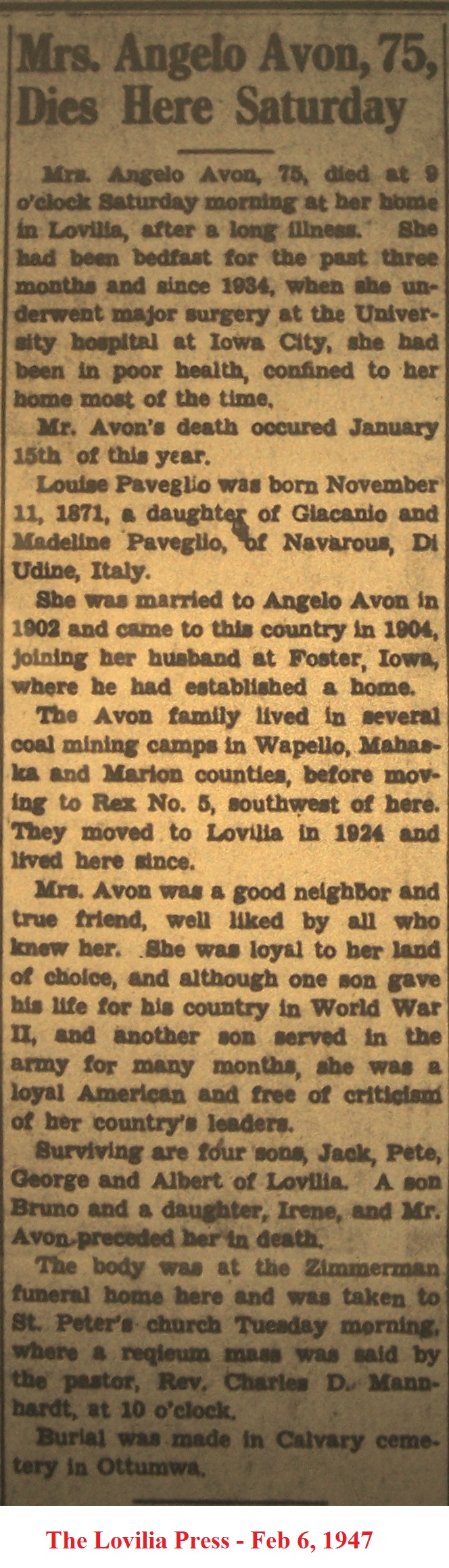 AvonLouise Obituary