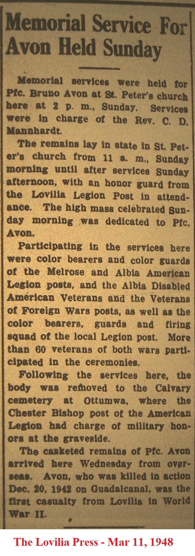 AvonBruno Burial