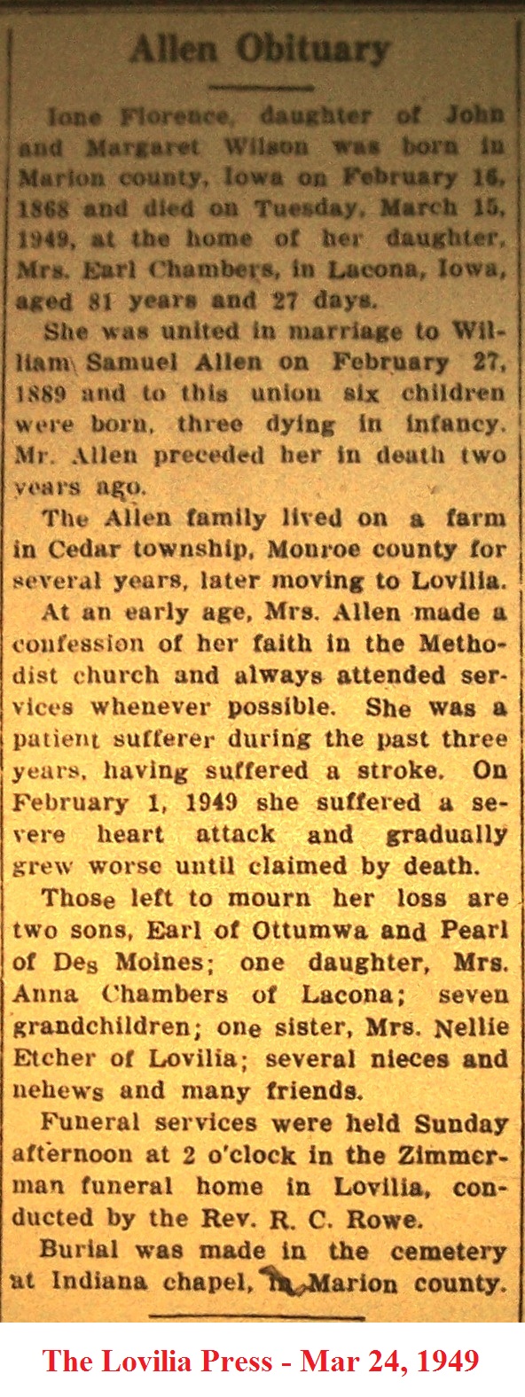 AllenEthel Death Notice