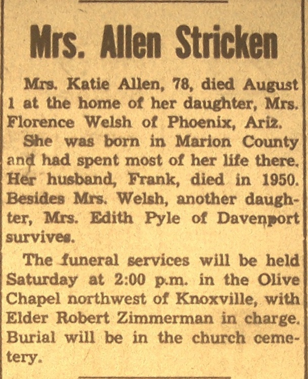 AllenKatie Death Notice
