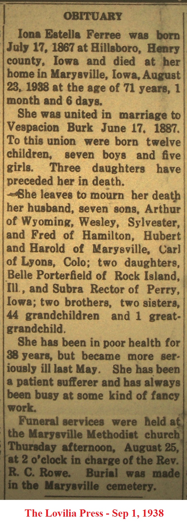 BurkIona Obituary