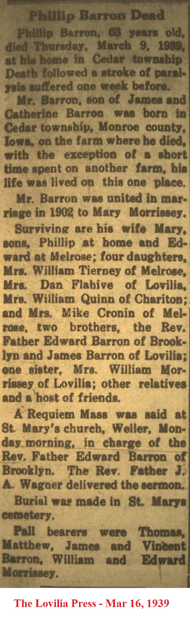 BurnsTomMrs Death Notice