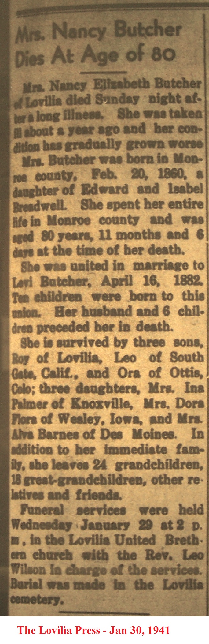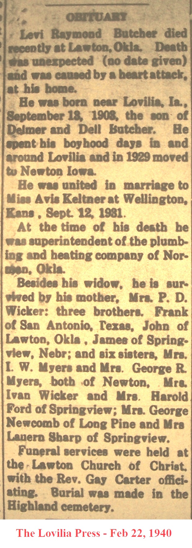 ButcherLevi Obituary