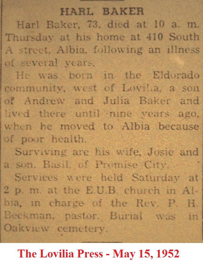 BakerHarl Obituary