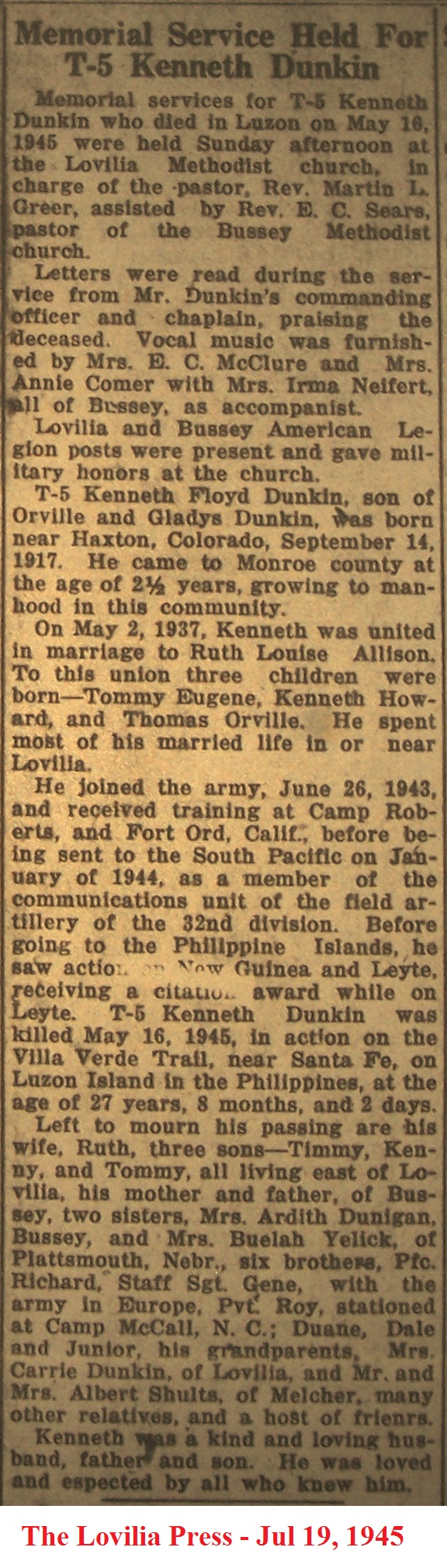 DunkinOttomer Obituary