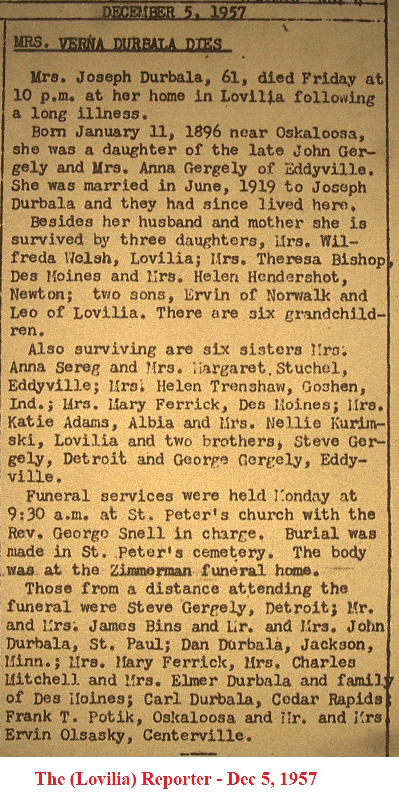 DurbalaVerna Obituary