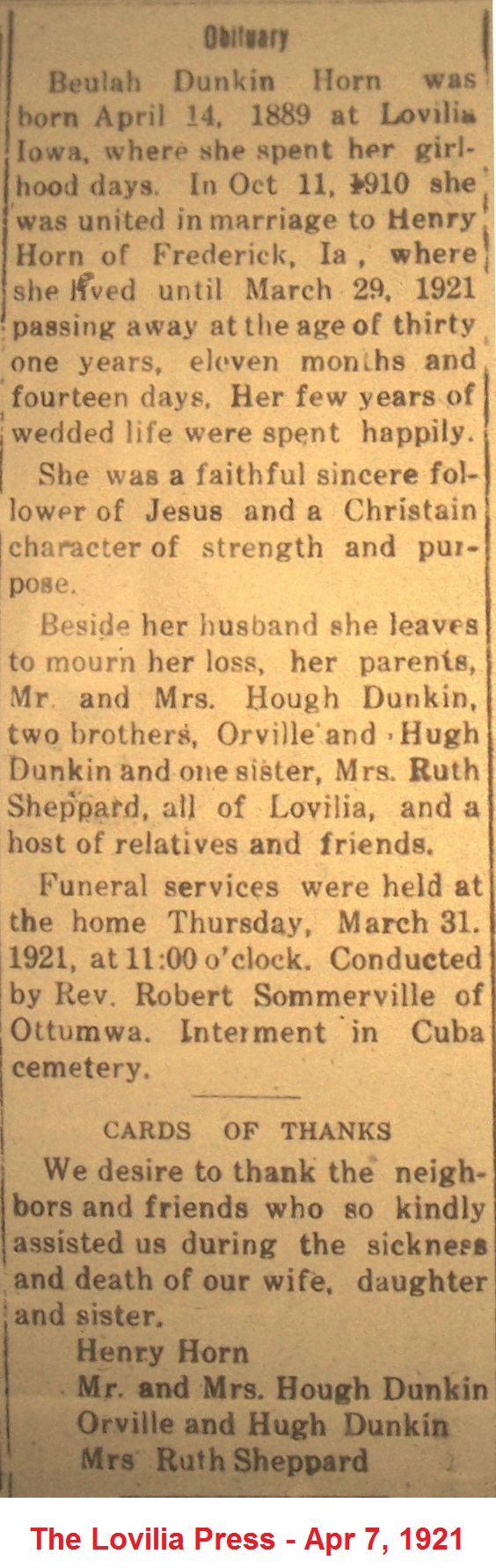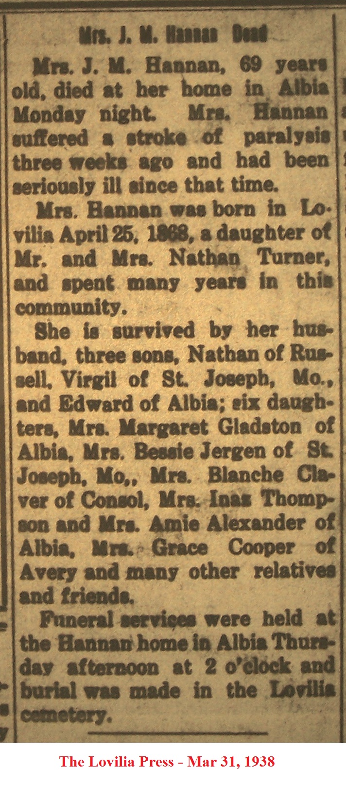 HurlyHannah Death Notice