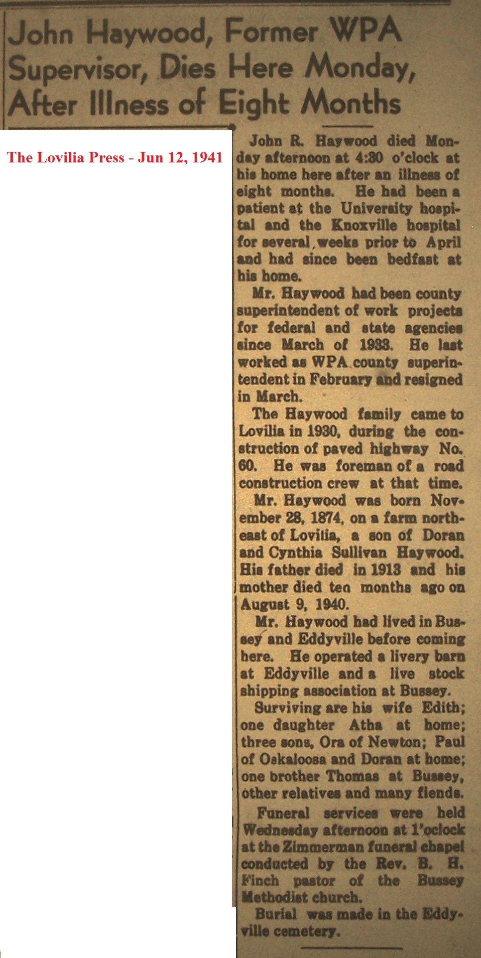 HaneyChester Death Notice