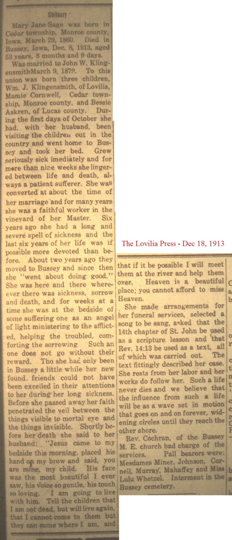 KeeferJennie Death Notice