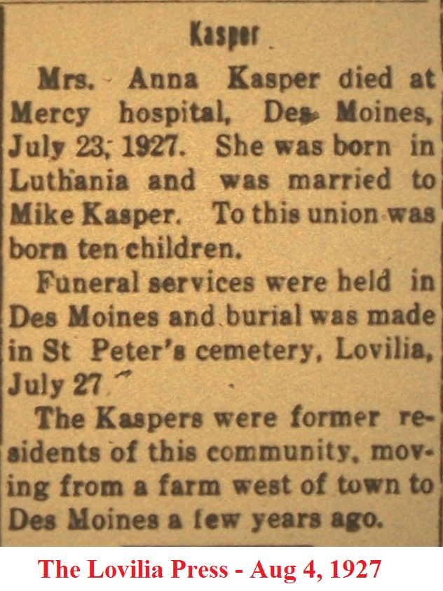 KasperAnna Obituary