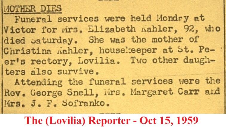 KahlerElizabeth Obituary