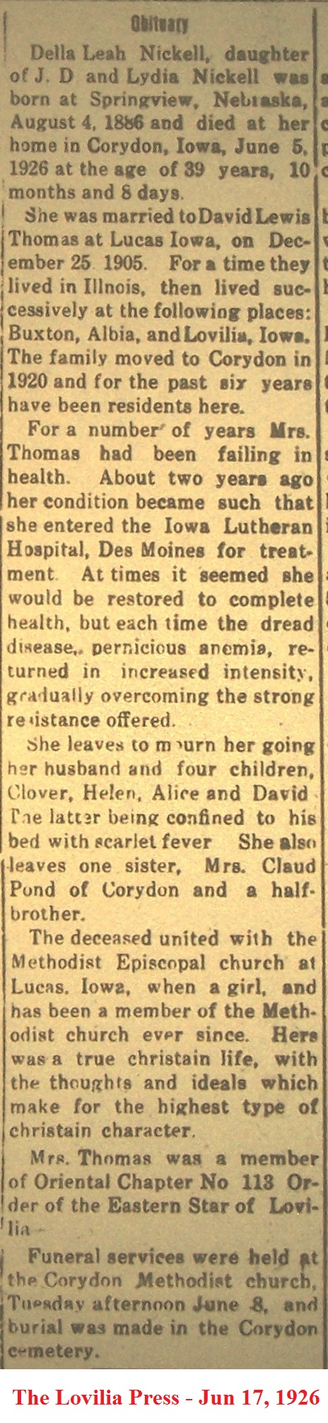 ThomasDella Obituary