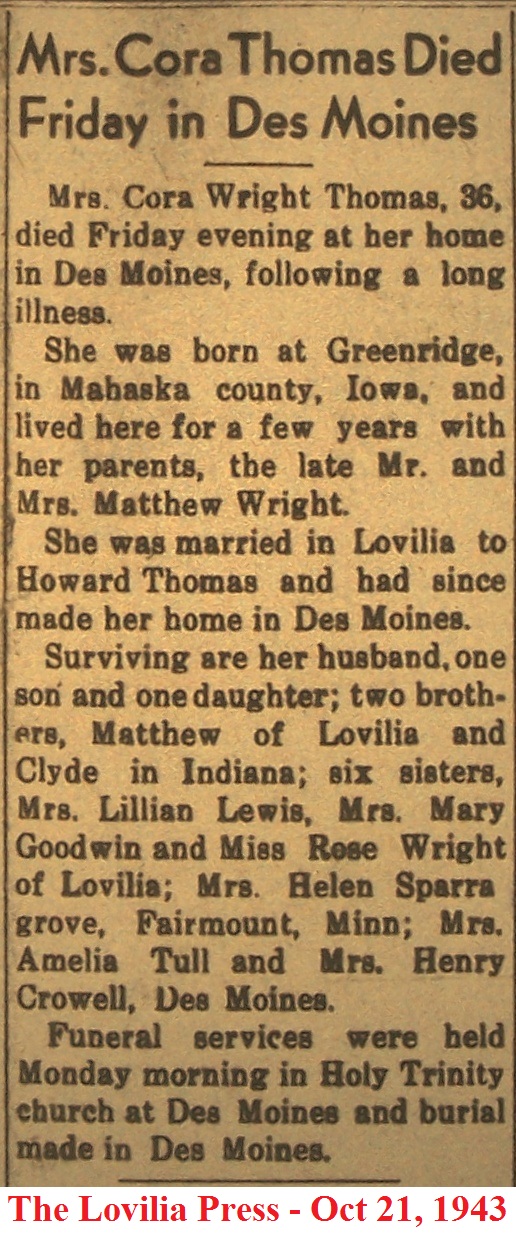ThomasCora Obituary