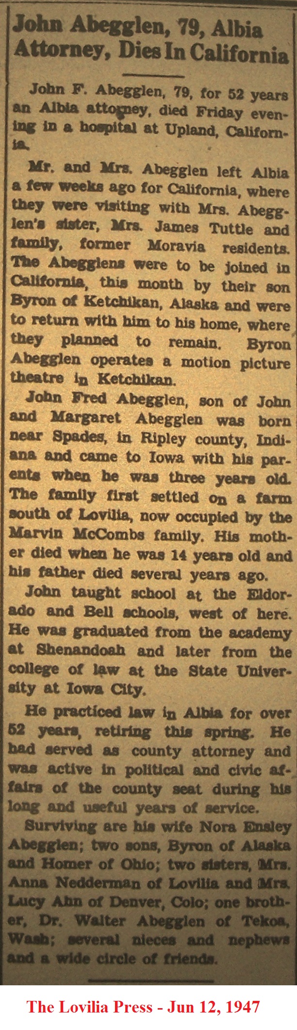 AbegglenJohn Death Notice