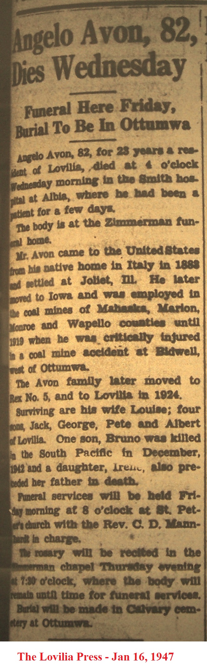 AvonBruno Death Notice