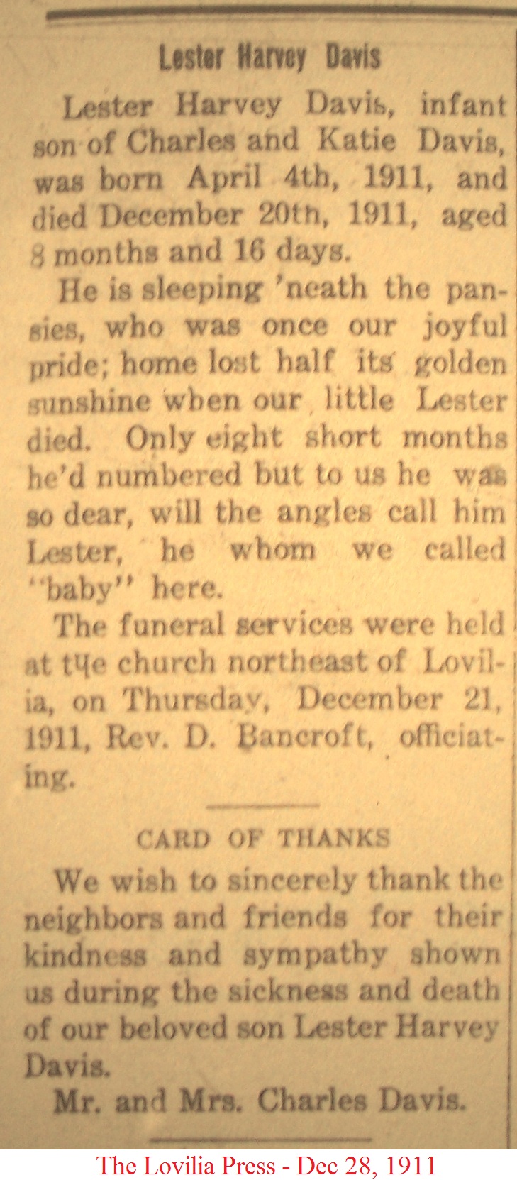 DavisDorothy Birth Announcement