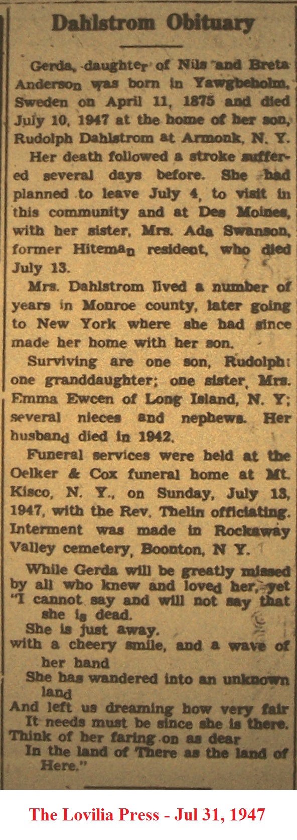 DahlstromGerda Obituary