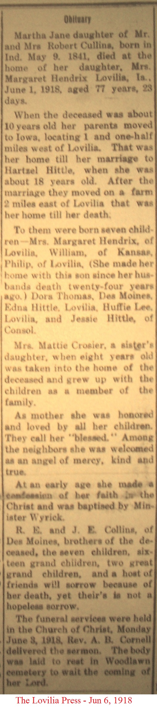 HutchensJennie Obituary