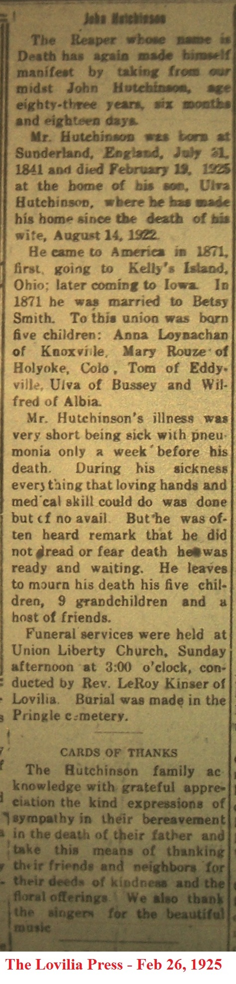 HutchinsonLloyd Obituary
