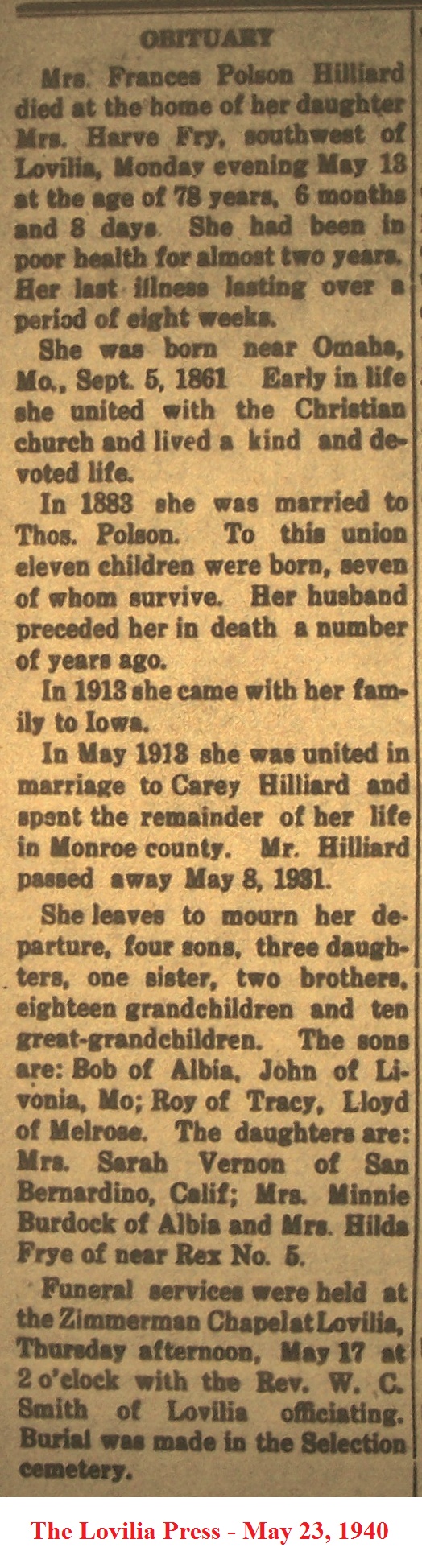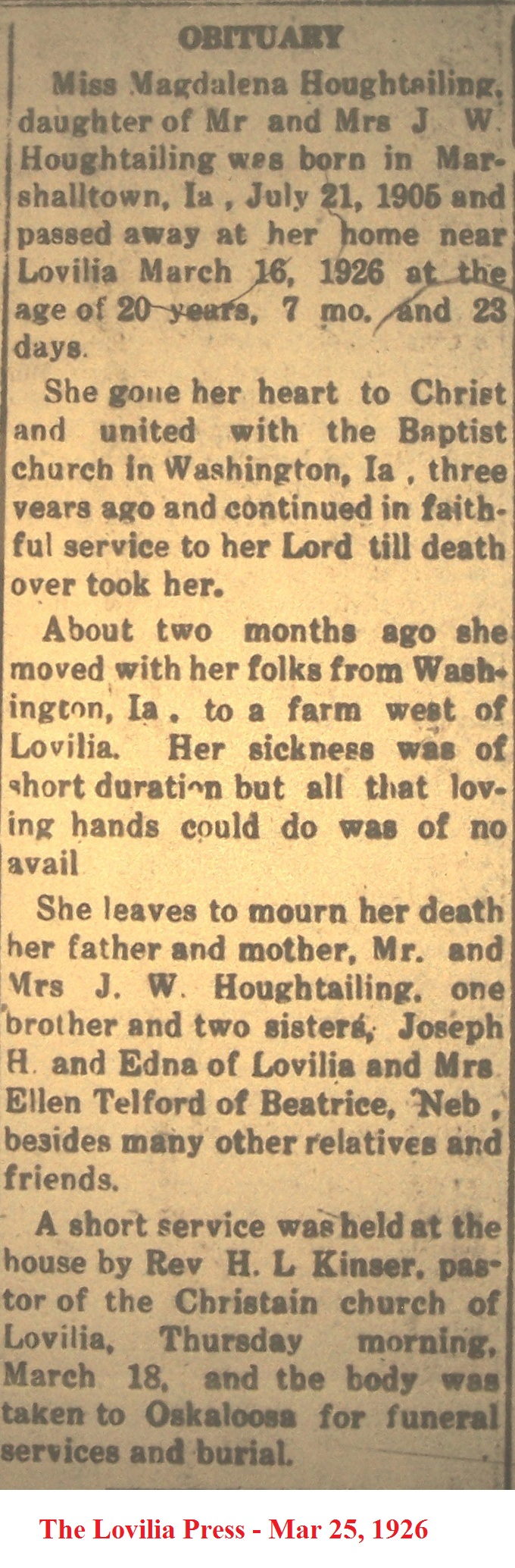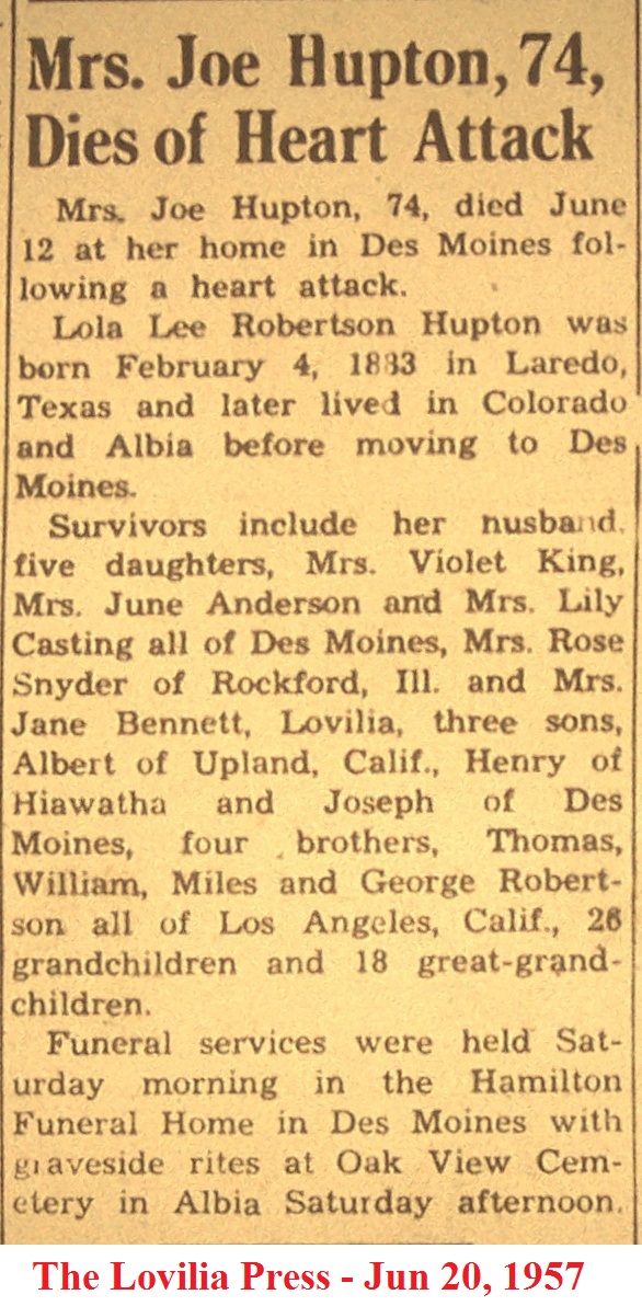HuptonLola Obituary