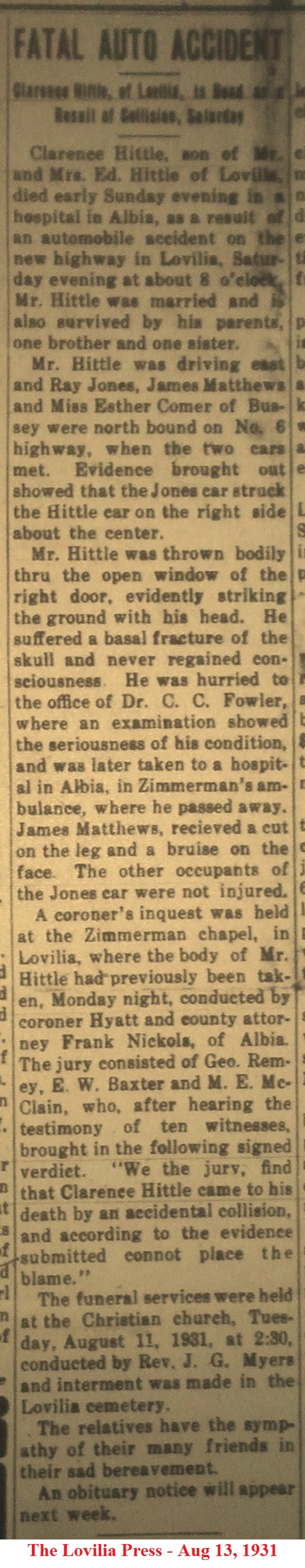 HutchinsonClarence Obituary