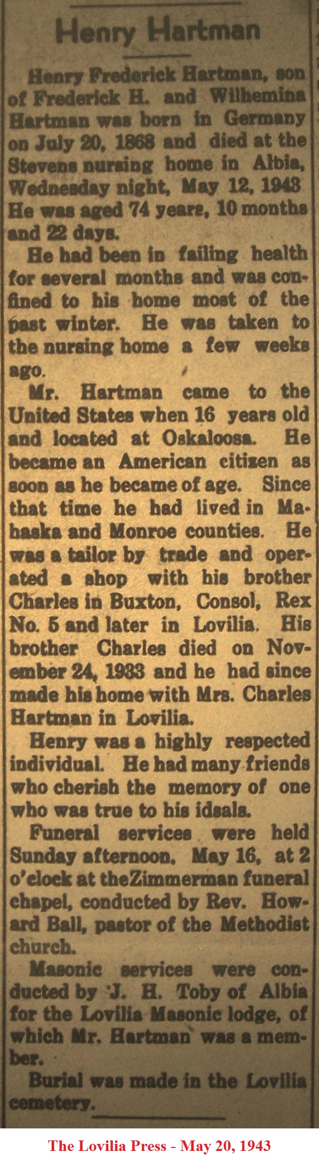 HammondHenry Death Notice