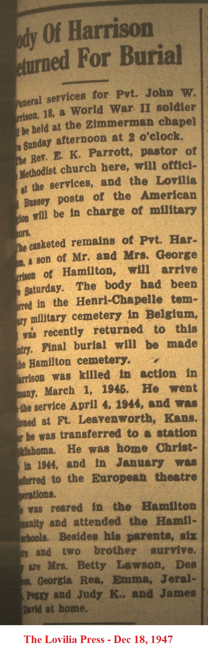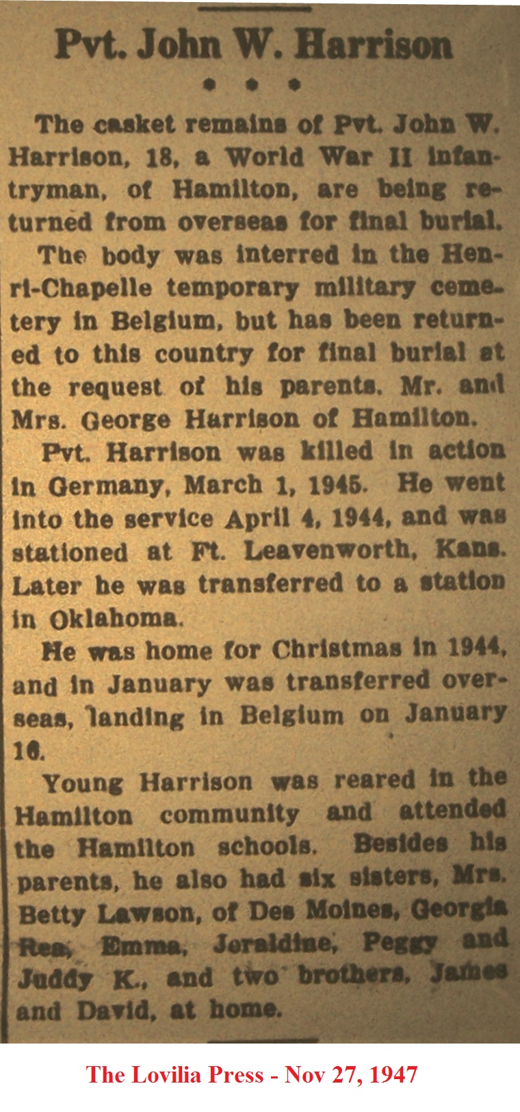 HamiltonJohn Death Notice