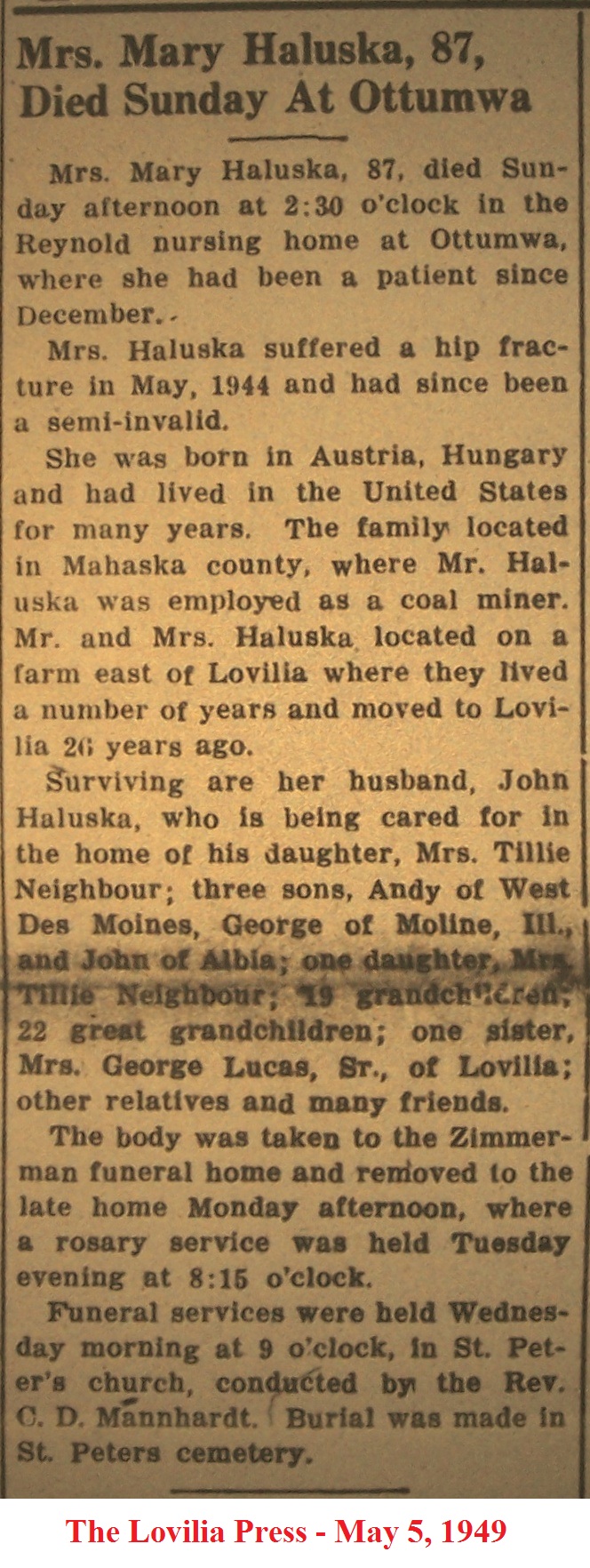 HaluskaMary Obituary