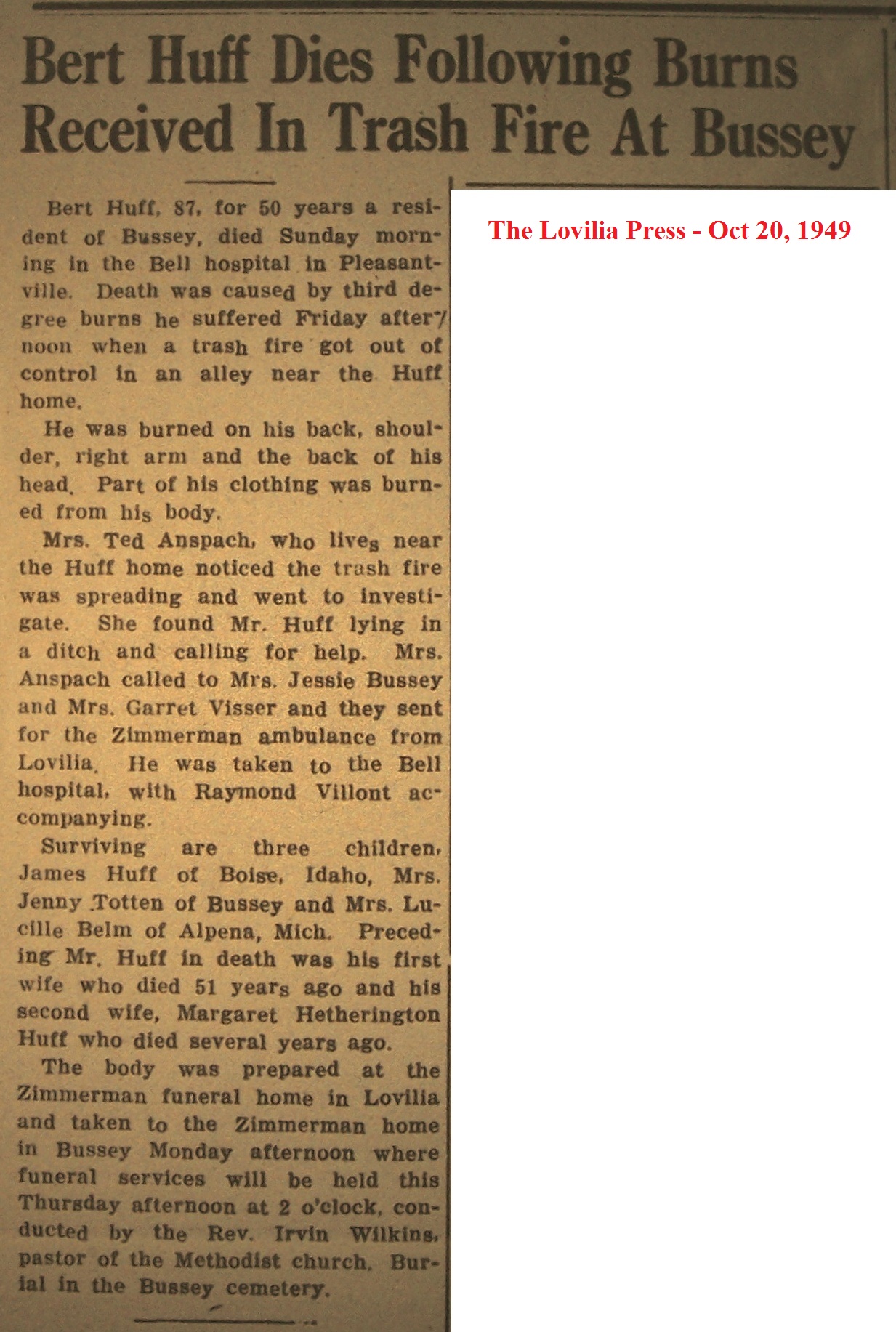 Huxford Laffieatt Death Notice
