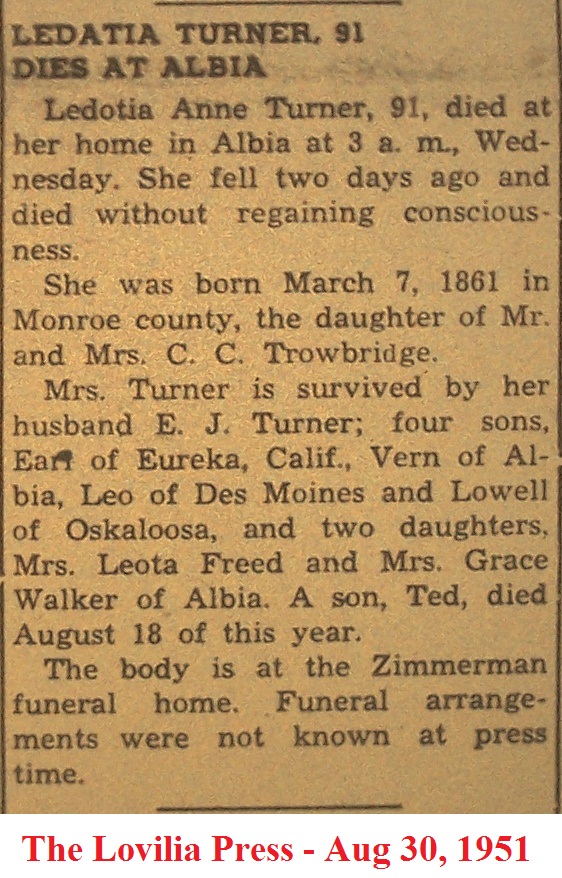 TurnerLedotia Death Notice