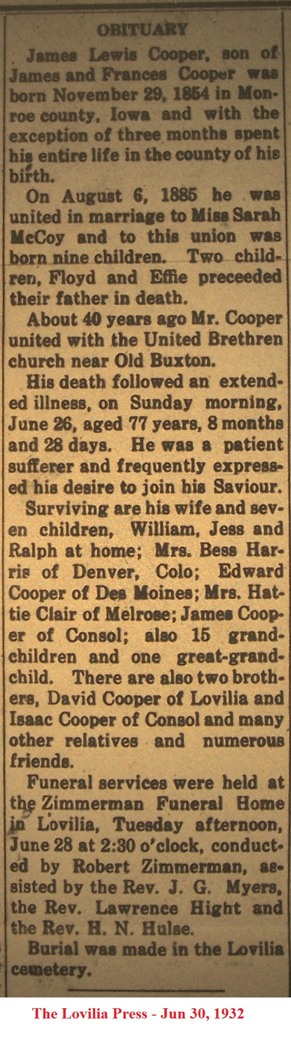 CooperJames Obituary