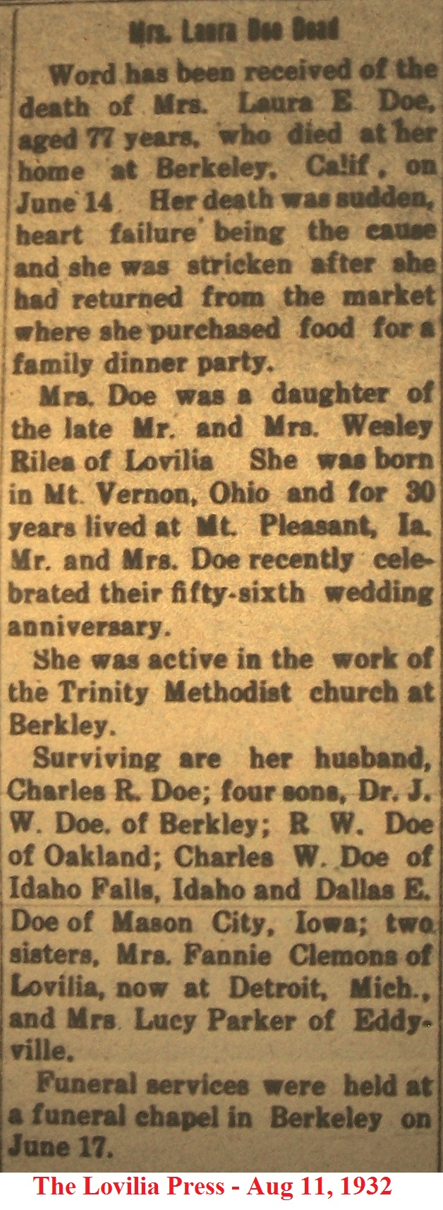 DoeLaura Obituary