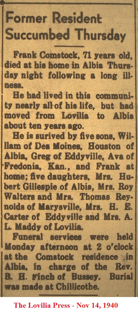 ComstockFrank Obituary