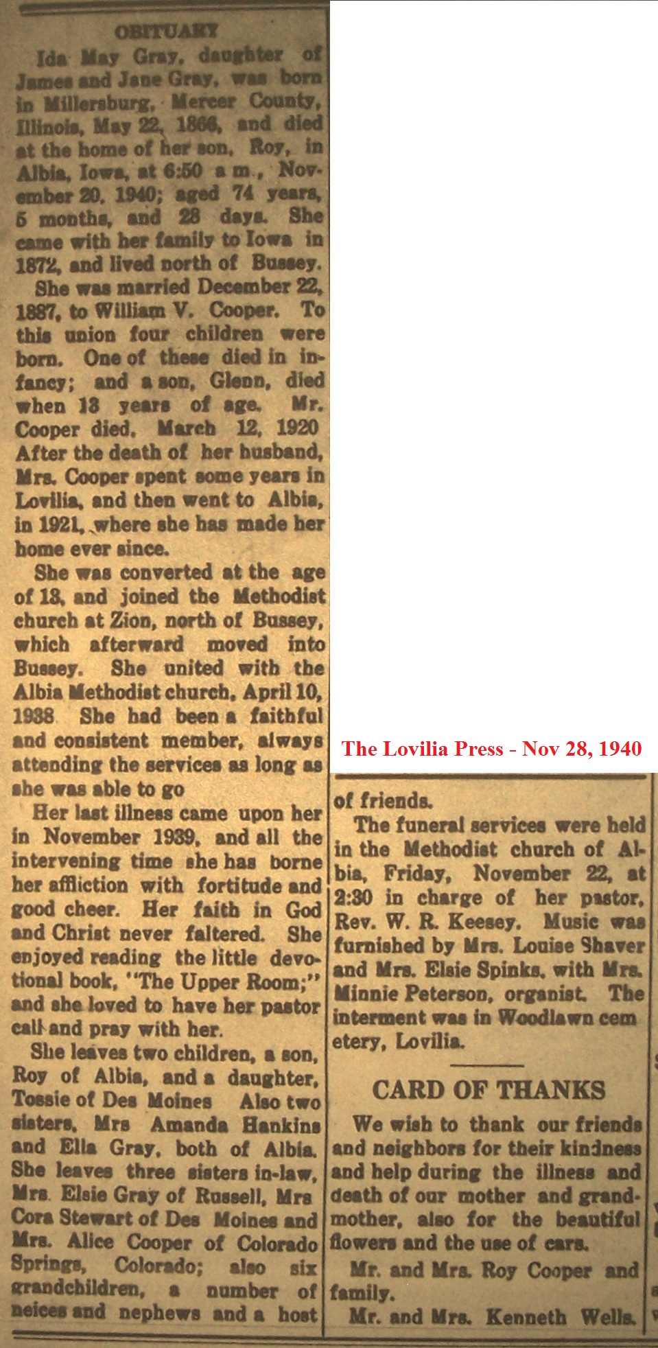 CooperIda Obituary