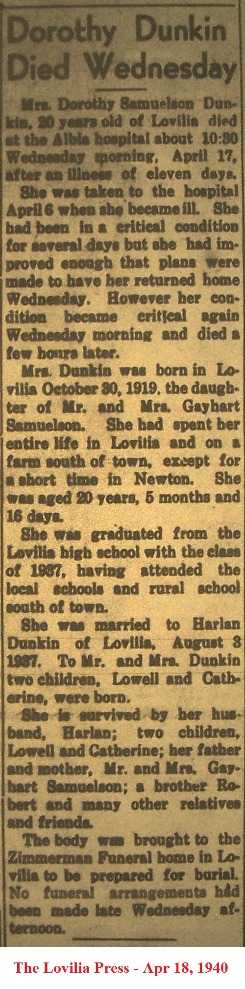 DunkinDorothy Obituary