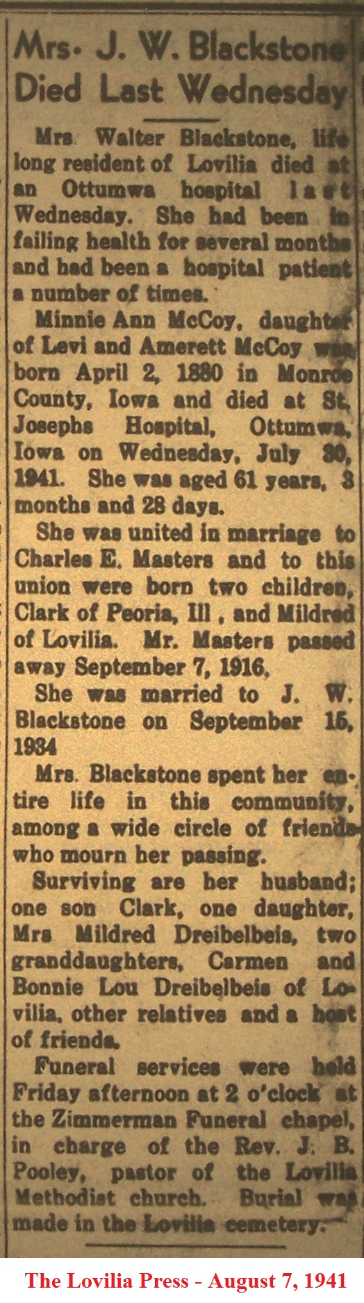 BlackstoneMinnie Obituary