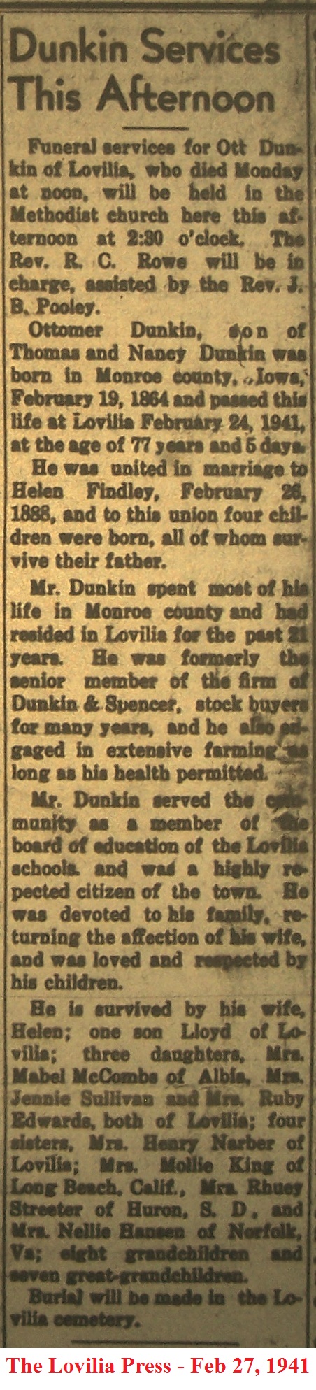 DunkinOttomer Obituary