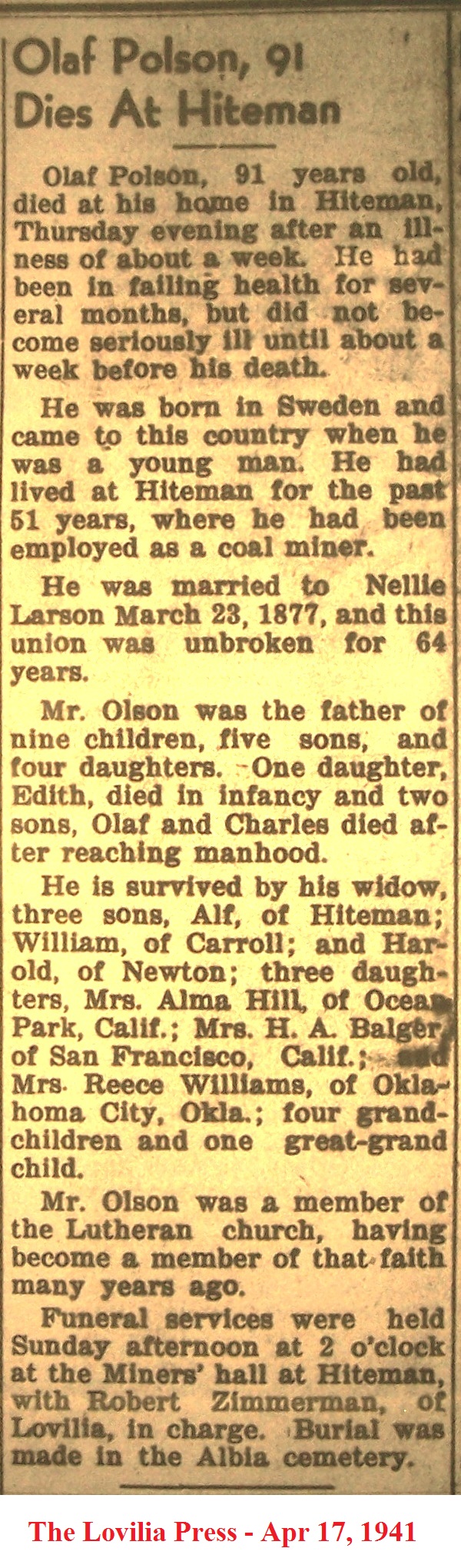 PolsonOlaf Obituary