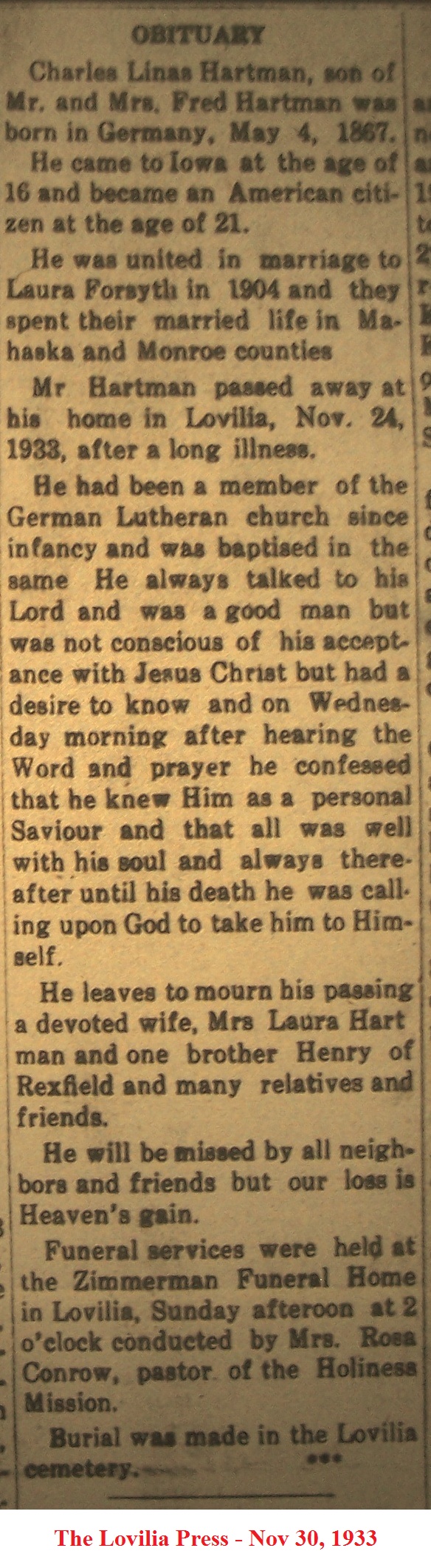 HartmanCharles Obituary