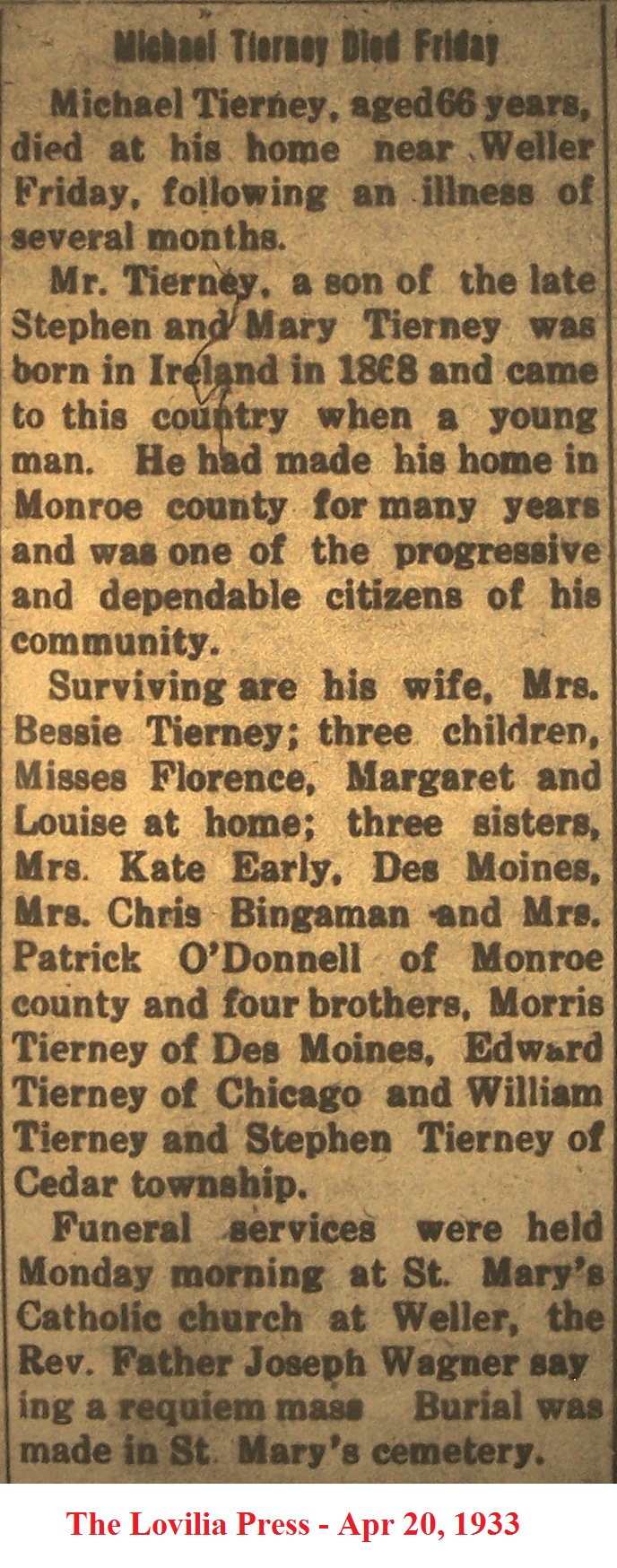 Tierney Michael Obituary
